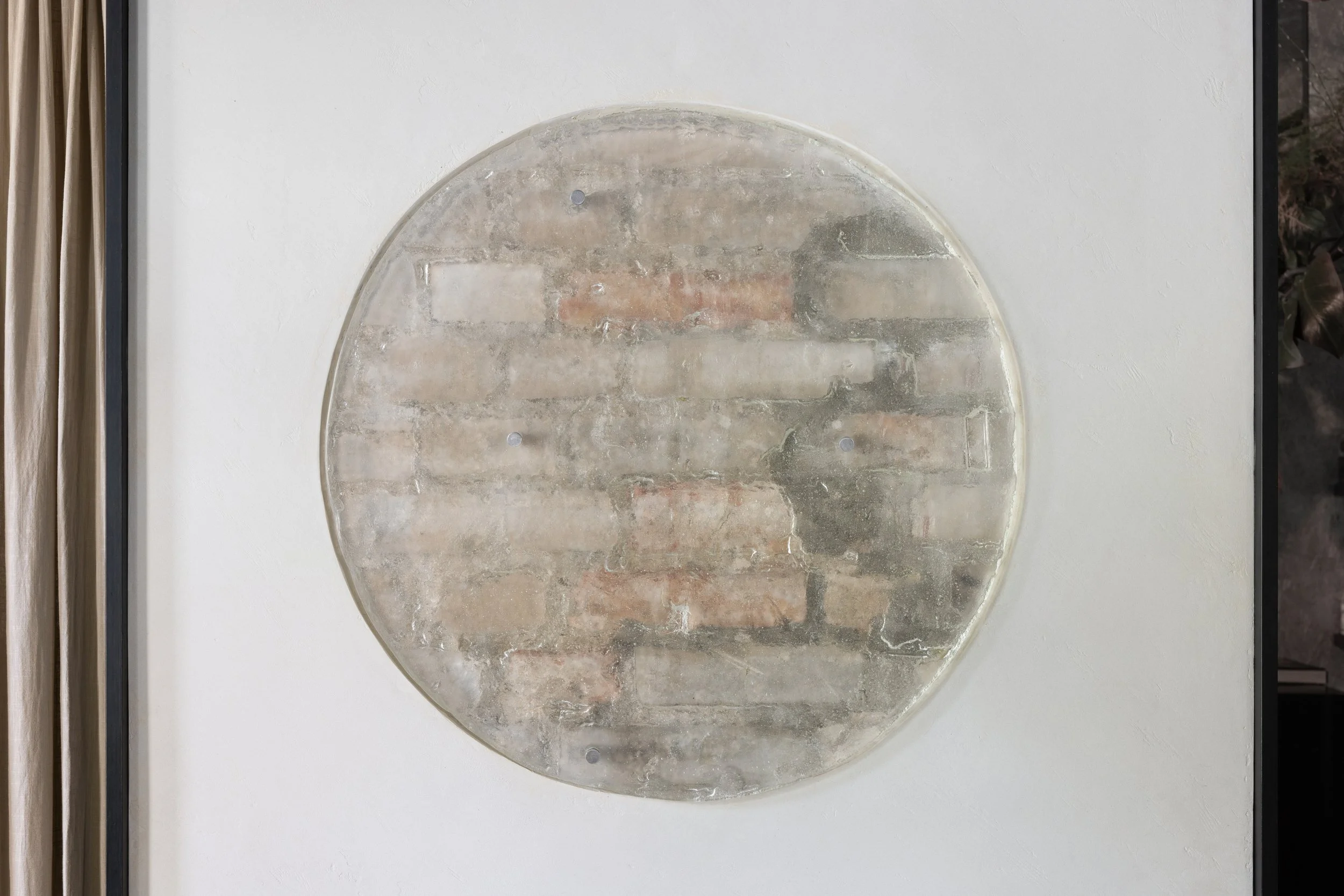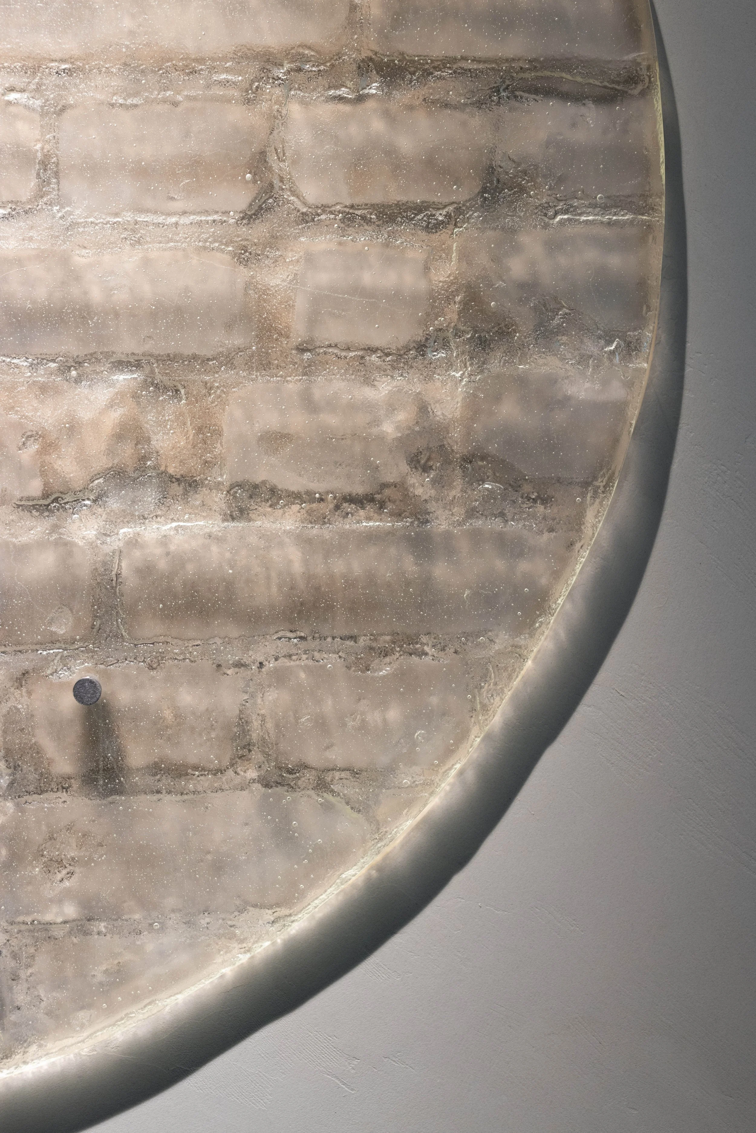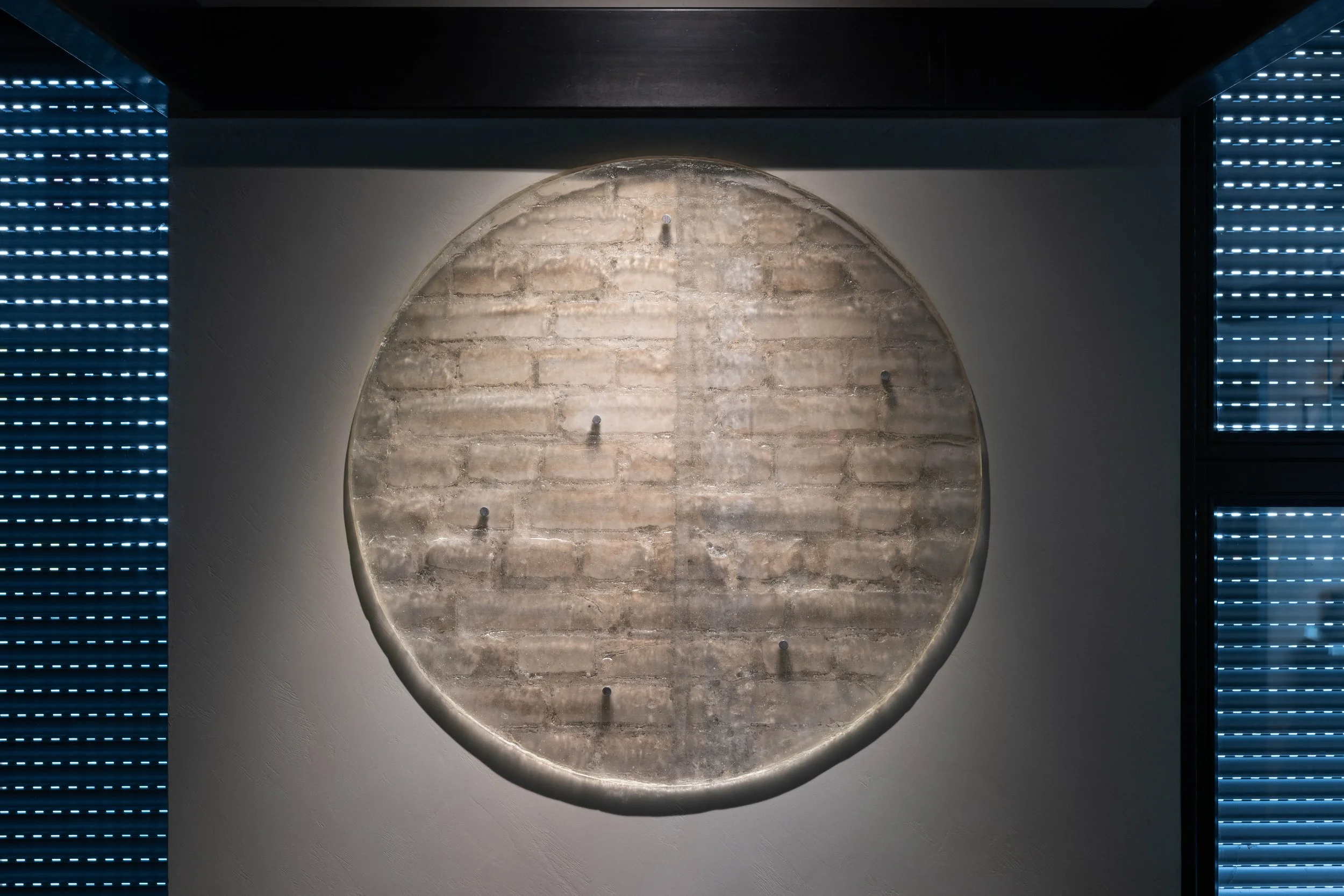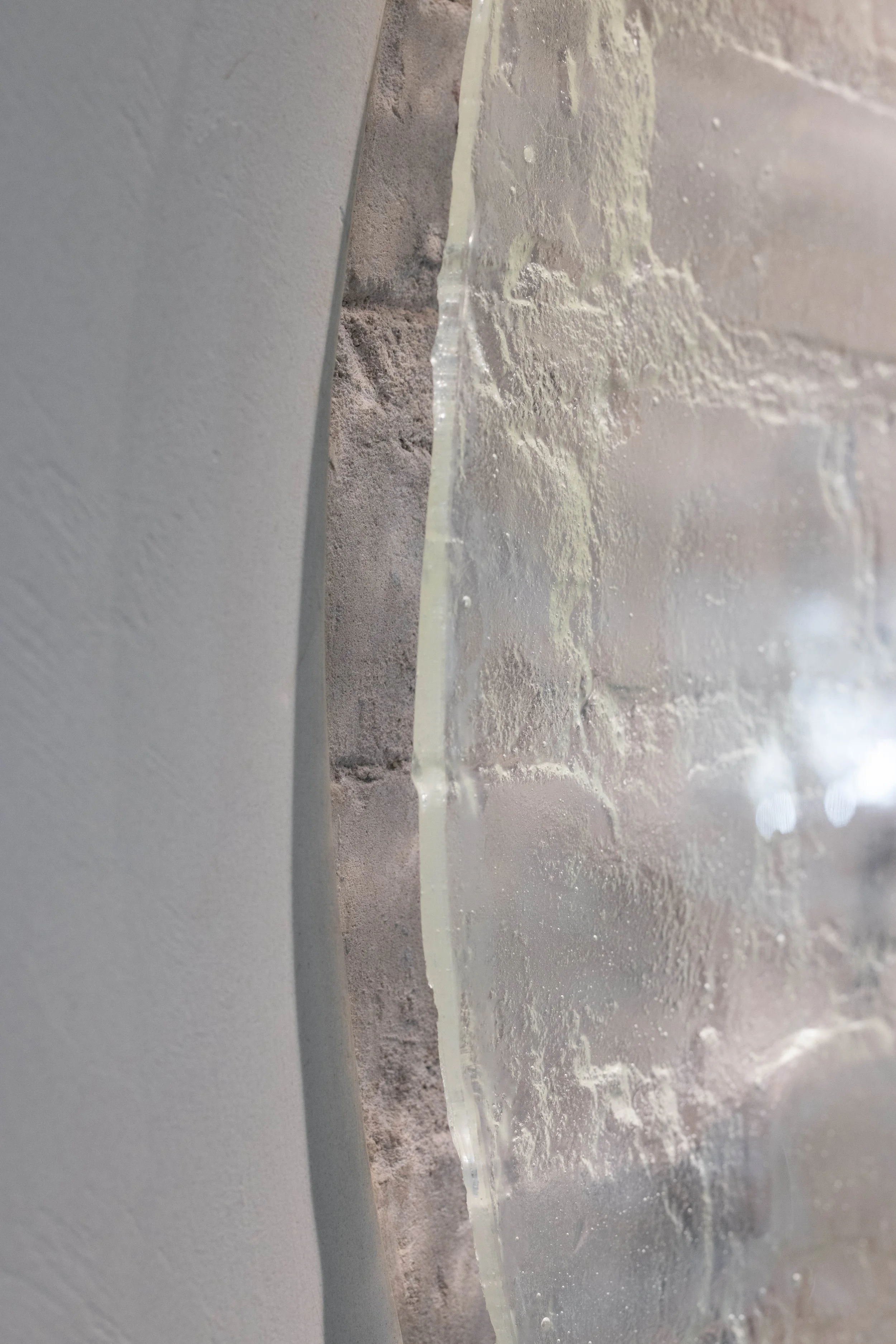 These bespoke glass objects capture highly detailed imprints of the bricks and mortar that have been concealed behind the walls, revealing traces of handiwork, hanging points, furniture, scratches, fingerprints, varying materiality, and evolutions in the buildings structure over time. With these ghostly captures suspended in glass, Temporal Imprints also allude to forgotten stories of bygone eras–– the haunting skeletal imprints highlighting the ephemeral nature of a building and the lives of its past inhabitants.